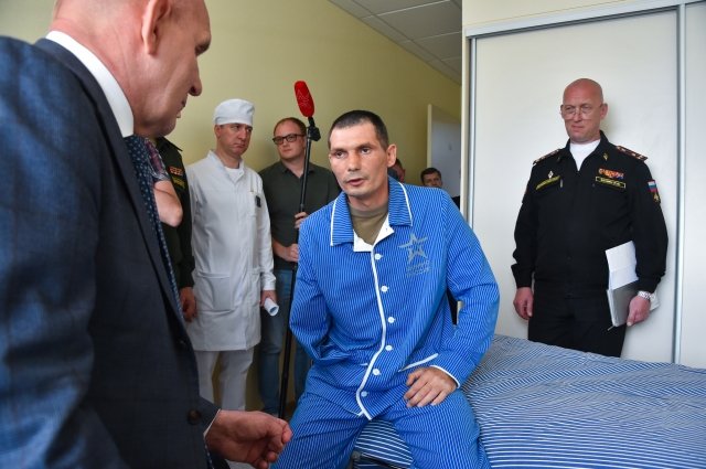 Вручение состоялось в госпитале им. А.А. Вишневского, где сейчас находится на лечении военнослужащий.
